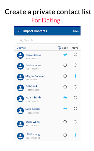 Private contact list for dating