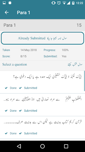 This application from Anjuman Khuddam ul Quran (Quran Academy) takes the participants through a series of tests based on the Holy Quran allowing them to test their understanding and knowledge of the Holy Quran.