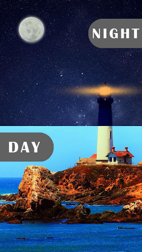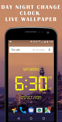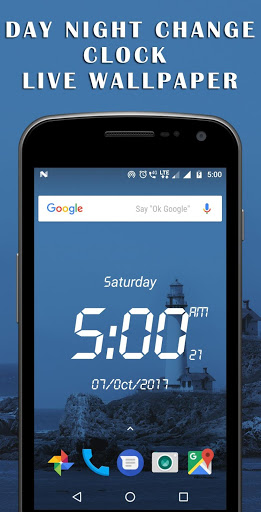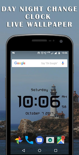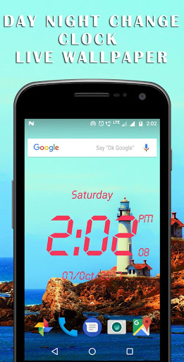 Day night LED Digital Clock Live Wallpaper have one light house beach theme with six atmospheres which is change as per time automatically.
