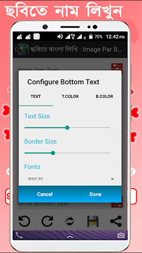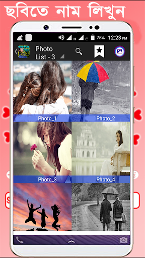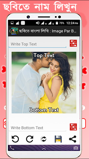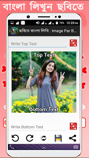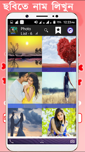 Write Bengali Text on photo app allows you to add various Bengali text and write Bengali poetry on photo from your gallery or camera, also select from huge collection of HD Background like love, romance, birthday, anniversary, good morning, good night, friendship etc.