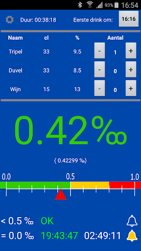 The calculator only gives an indication of the alcohol level in your blood. The actual values may vary slightly depending on your condition, whether you have eaten or not, ... Under no circumstances is it a binding result. The results also do not precede the results of an alcohol check conducted by the police. You cannot derive any rights from the calculation. Not to the police and not to the designer of this app.
