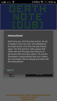 Content on Application is not hosted or owned by application owner. Death Note Anime- Watch Online app only uses Webviewer API to load content.
