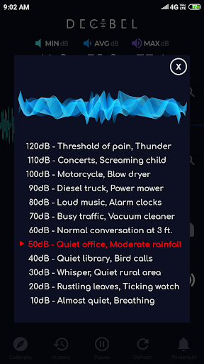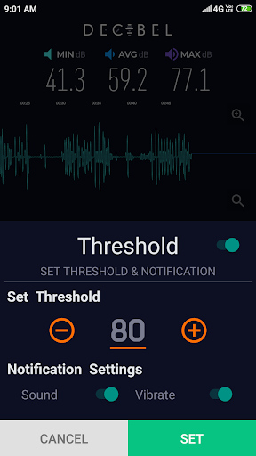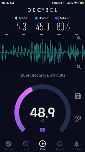 Decibel - Threshold Sound Meter is an app that measures the environmental noise in decibels (dB) and visualizes it on a clean and tidy graph.