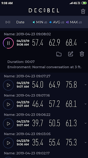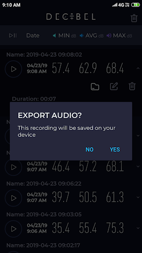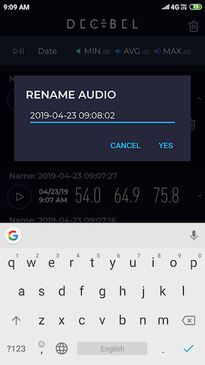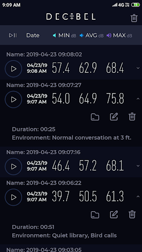 - sort saved recordings based on their creation date, minimum, average or maximum dB by pressing on the table column in the history section.