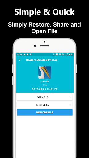 The Photo Recovery app can help you share or open deleted photos before restoring them.