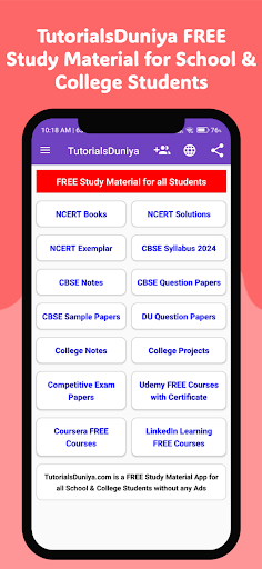 I created this TutorialsDuniya app to solve this study material problem for every school and college student by providing all study material