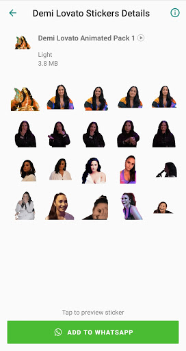 Stickers packs for WhatsApp about the famous pop singer Demi Lovato.