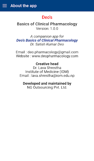 The companion smartphone application for Deo’s Basics of Clinical Pharmacology, a noble endeavor to address the need of a comprehensive yet manageable volume on Pharmacology. Throughout the book/app, precision of facts has been given due importance and standard references have been consulted while preparing these material. Tables, graphs, charts, pictures and illustrations have been used liberally to facilitate assimilation of facts and to aid easy reproducibility of these facts while sitting for exams. Flow of contents in each chapter promotes step by step learning, beginning with the basics and gradually moving to the details and specifics.