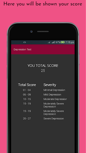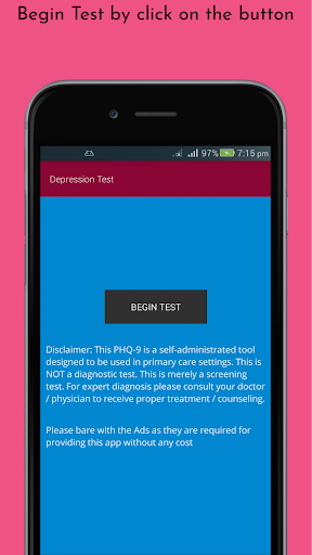 DISCLAIMER: This self-test Depression test doesn't meant to be a diagnosis for your depression. This app cannot replace the services provided by the doctor / physicians.