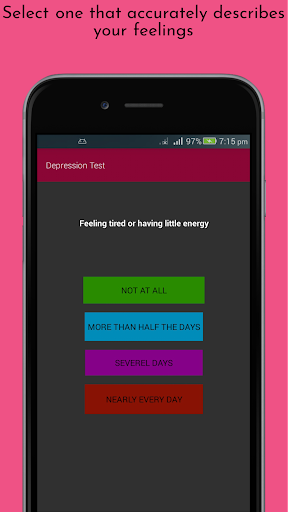 Depression Test will ask you 9 simple questions and you will have to answer those questions by selecting most relevant answer.
