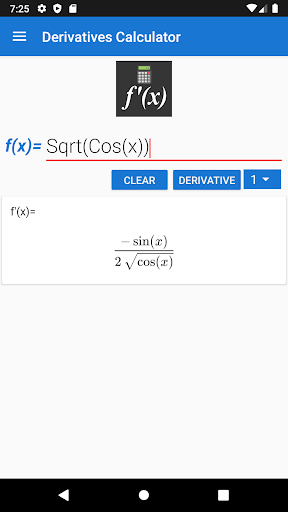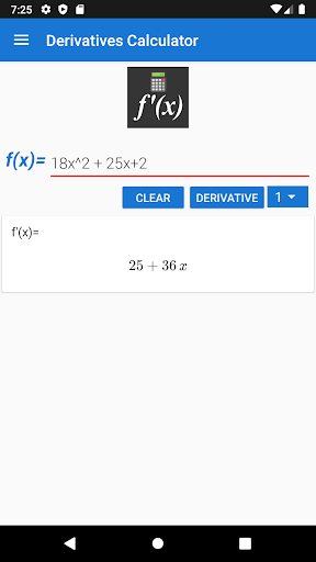 You just have to set the function and the derivative will appear once to have clicked the right button.
