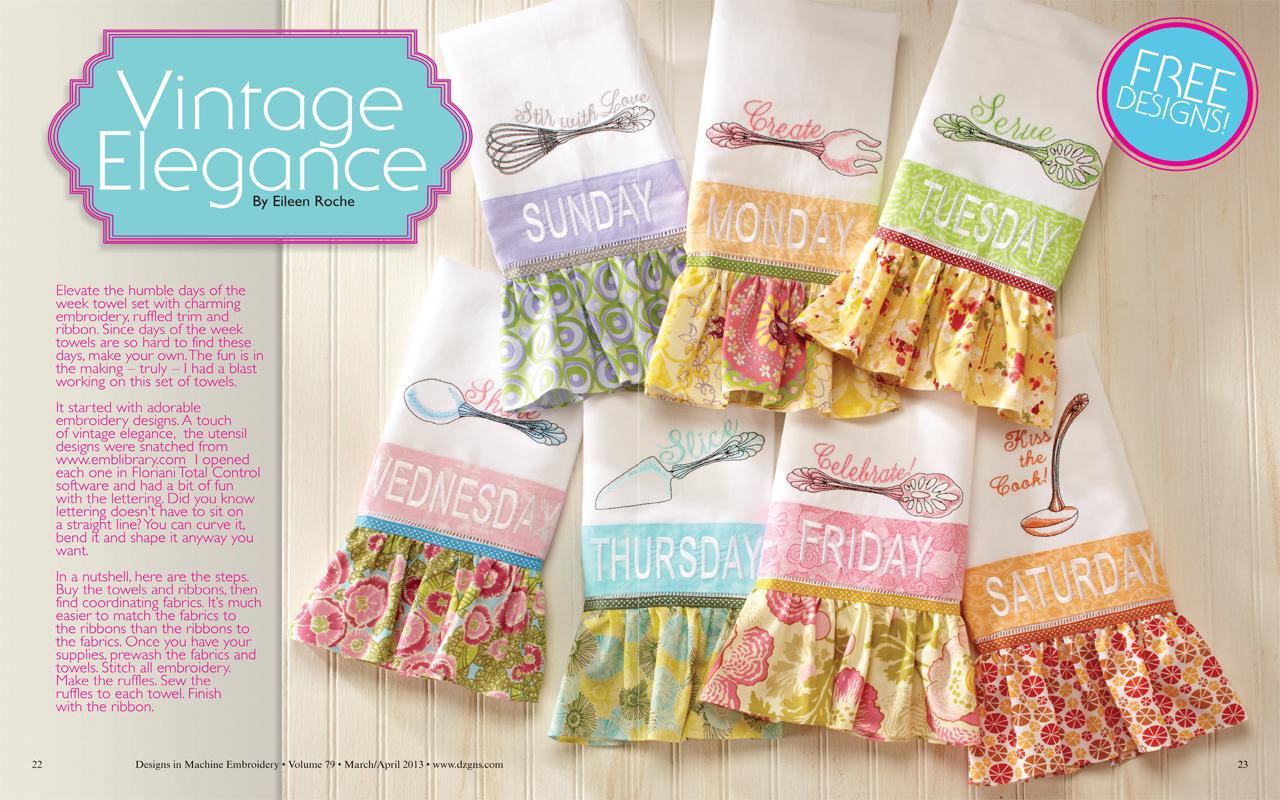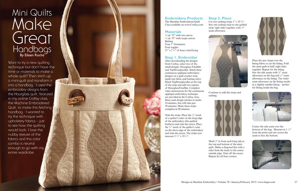 Designs in Machine Embroidery is your source for inspiring embroidery projects! Designs in Machine Embroidery is the leader in providing inspiration and information to the machine embroidery enthusiast. Editor Eileen Roche shares her wealth of embroidery and sewing experience in the popular project based magazine. Her talent, creativity and enthusiasm distinguish her from others in the industry and are the driving force behind the company's success. Regular contributors to the magazine include Nancy Zieman, Deborah Jones, Alba Fekete, Katherine Artines and more. Eileen is also an innovator in her field-developing products in the embroidery industry that save time and money while enabling embroiderers to fulfill their creative passion for machine embroidery. She is a frequent guest on Sewing With Nancy and she also hosts the Embroider it Yourself educational video series, as well as the author of several books. Whether you're interested in embroidering quilts, wearables, home décor or crafts or you want to master an embroidery technique -- look to Designs in Machine Embroidery as your resource. There's something for every embroiderer at Designs in Machine Embroidery.