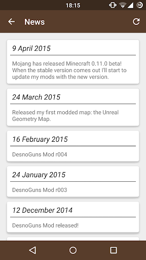With the "Desno365's Mods" app you can check the latest version and the changelog of the MCPE mods made by Desno365.
