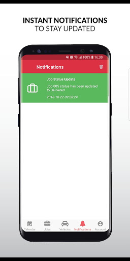 - Receive real-time push notifications when job status changes, or when a vehicle is speeding, stationary for too long etc.