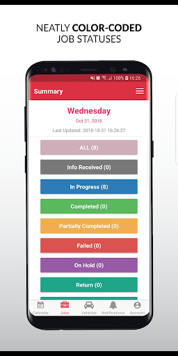 - View summary of job statuses for the day at a glance
