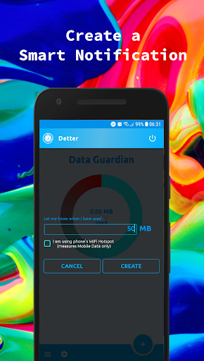 Detter | Data Guardian is an awesome, free real-time data usage monitoring android tool. It accurately measures the internet data your device uses in real-time giving you accurate live updates through a Smart Notification.