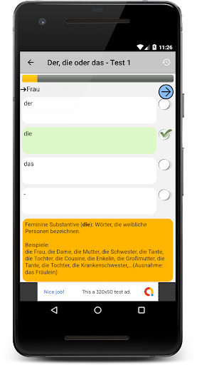 German Grammar Test is a free grammar practice app designed to help improve German grammar accuracy. The app offers 1000s of questions to help practice and reinforce your German grammar skills. It is FREE and works 100% OFFLINE.
