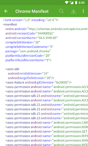 View manifest of any apps, search any content of manifest, save manifest to sdcard in text or html.
