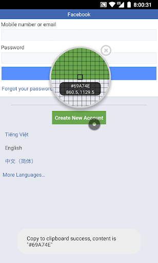 Similar to color sampler tool or eyedropper, you can view or copy the color and coordinate of any other App easily, and more ARGB and CMYK