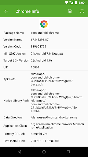 View app package name, version, uid, apk dir, so dir, data dir, first install and last upgrade time, component info and so on.