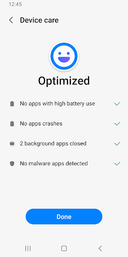 For a more pleasant experience while using your Galaxy smartphone, try the "Device Care" app by Samsung Electronics. With the "Device Care" app, anyone can easily keep their smartphone in good condition. The intuitive screen layout and interactions help the user check the condition of their device at a single glance and maintain their smartphone easily without expert knowledge, as it enables them to take prompt actions if problems, such as malware (viruses, spyware), arise.