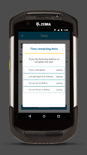 • Button Test: checks the operation of push-to-talk, left or right scan trigger, volume up and volume down device buttons.