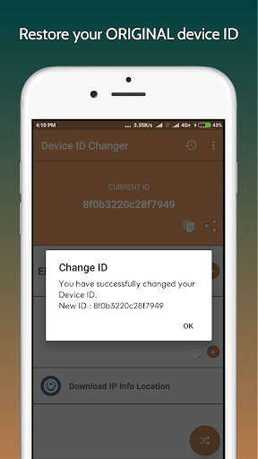By this app we can change ANDROID_ID without reset phone because when we reset phone our phone data may lost. By this app our data is safe and we can easily reset ANDROID_ID.