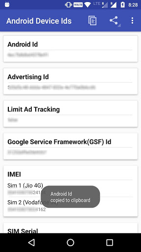 If you want to know your Android Id, Advertising Id, IMEI, Sim Serial, Wifi Mac address etc.