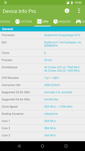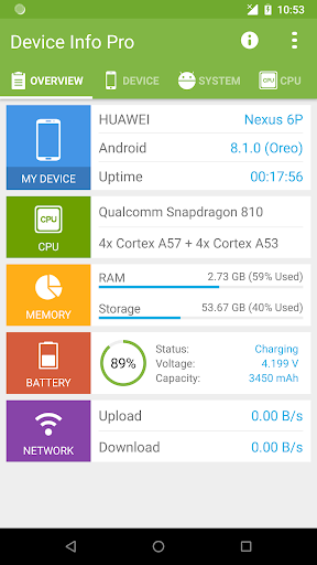 Device Info Pro is a powerful system utility for Android that allows you to get detailed In-depth hardware information.