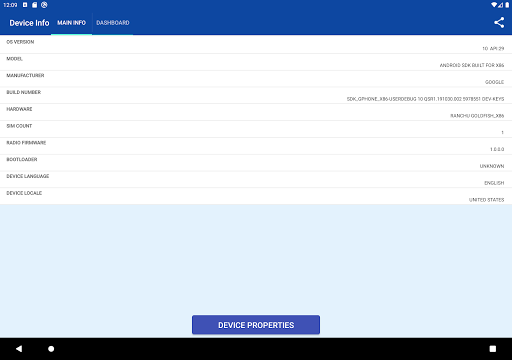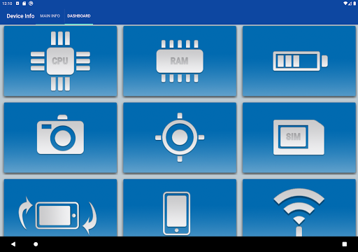 Device Info brings precision in understanding what is under the hood of your android cell phone. App is showing few basic information about device in the main screen and from there it brings you to more advanced data. In the main menu you can visit 9 modules which will give you detail information about installed HW features of your phone or about current phone performance:
