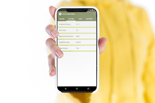 Device information is an android app which gonna helps you to know your phone well, the most comprehensive provide you with all the informations about your phone, not just hardware info also system info and root checker with simple buttons and simple interface all you need to do is install our app.