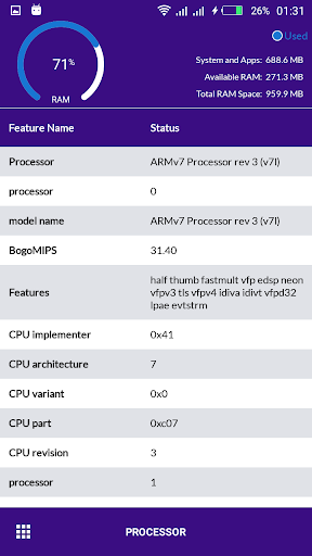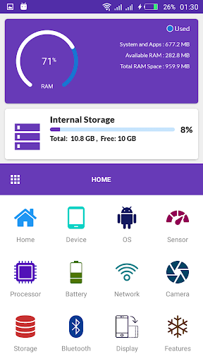 Device Info is a simple and powerful Android application that gives you complete information about your mobile device with advanced user interfaces. Device Info includes information about CPU, RAM, OS, Sensors, Storage, Battery, SIM, Bluetooth, Installed Apps, System Apps, Display, Camera, etc.