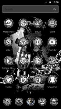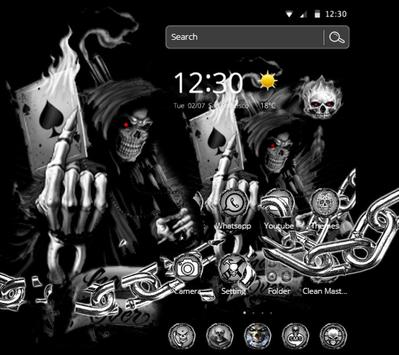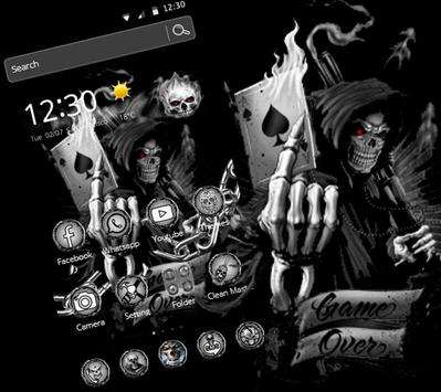 Devil Death Gun Skull Theme with rocking hell skeleton skull holding gun in hand wallpaper skin is a very good choice. We have 60 specially designed dark style application icons. 3D Devil skull, dark skull king holding a guns in hand inspiration to complete the Devil Death Gun Skull Theme. If you like the Devil Death Gun Skull Theme or death skeleton skull theme and death skull theme, you will love this hell skull skeleton theme and it will bring you a surprise. Skeleton are in Horror jungle art background, dark night jungle, skeleton rock wallpaper, Devil Death Gun Skull Theme some unique fantastic horror ghost theme, so it looks very cool. Hell skeleton skull leader, with gun and rock reveal a sense of death, showing the charm of the skeleton totem. If you want us to make a special DIY wallpaper skin you just need to contact us via email. Let your phone a variety of cool animations unique. So get this color theme now FREE!