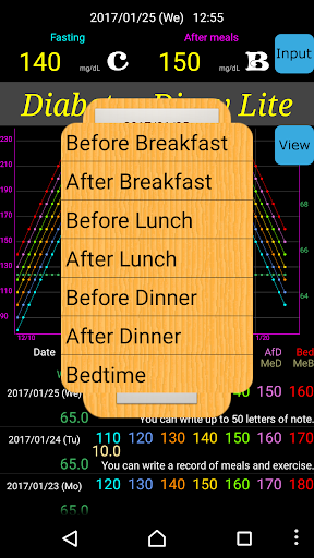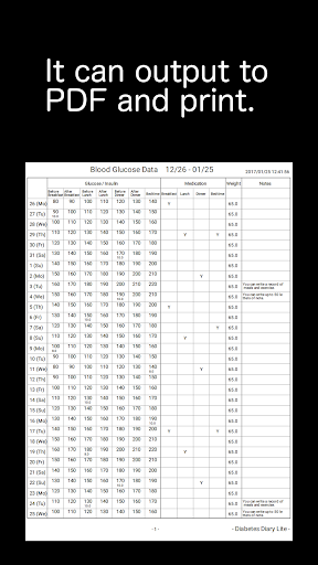 - Blood glucose levels before breakfast, after breakfast, before lunch, after lunch, before dinner, after dinner and before bedtime, you can record seven times a day.