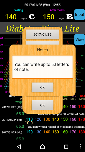 - You can enter notes for up to 50 characters. You can write about the content of the diet and exercise and the implementation.