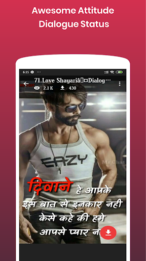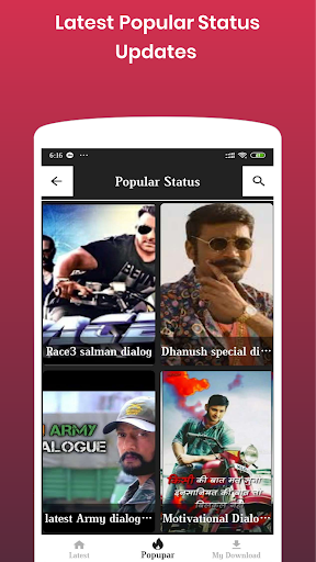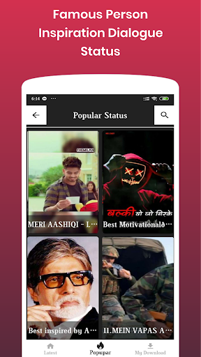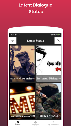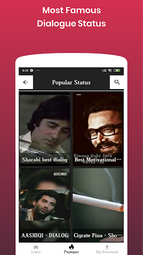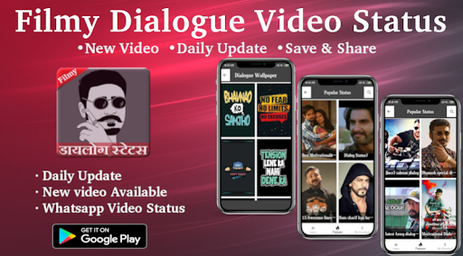 This app is designed for latest filmi dialogue whatsapp status Online Video status to download and share with friends and set in whatsapp. You will get large collection of videos for free and enjoy unlimited free status for your whatsapp every day mood.