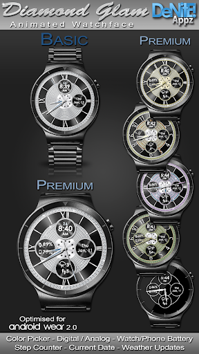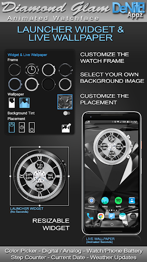 Watch Face, Clock Widget & Live Wallpaper brings a classic elegance to your wrist and Launcher. With realistic reflections that respond to the way you move your wrist or mobile device in real time you will be sure to catch the eye of every onlooker! Features include custom complications, battery levels, weather conditions, step counter, color picker & date information. A settings app will also be installed on your mobile device to configure the watch face for any look you desire. Select any color and create a completely custom look for yourself! Don't have an Android Wear watch? No Problem! You can use the clock widget or Live Wallpaper on your launcher!