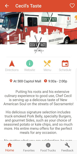 We cater to both Food Lovers and Food Truckers in the Sacramento Area, bringing ease to the exploration of new foods and the joy of finding them again and again. Our app strives to keep things simple, providing a list of all active food trucks in the area arranged in order of proximity to your current location. The list will update in real time as the trucks log their location and set how long they will remain there, so you will know exactly what time to take your lunch or make your dinner plans.