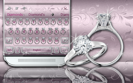 This luxurious as sparkling new Diamond Ring keyboard theme is designed to offer you a faster and smoother mobile operating experience. This pink and cool theme based on beautiful diamond rings is carefully crafted with shinny patterns, 3D effects, reflection and gradients to it will give your phone's screen a clean and quality look.