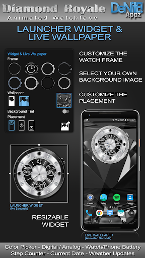 This completely customizable interactive HD Wear OS Watch Face, Clock Widget & Live Wallpaper brings a classic elegance to your wrist and Launcher. With realistic reflections that respond to the way you move your wrist or mobile device in real time you will be sure to catch the eye of every onlooker! Features include custom complications, battery levels, weather conditions, step counter, color picker & date information. A settings app will also be installed on your mobile device to configure the watch face for any look you desire. Select any color and create a completely custom look for yourself! Don't have an Android Wear watch? No Problem! You can use the clock widget or Live Wallpaper on your launcher!