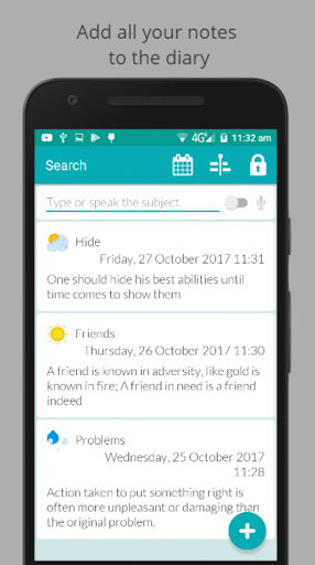 Search by voice or by writing for all the content or titles of the notes.