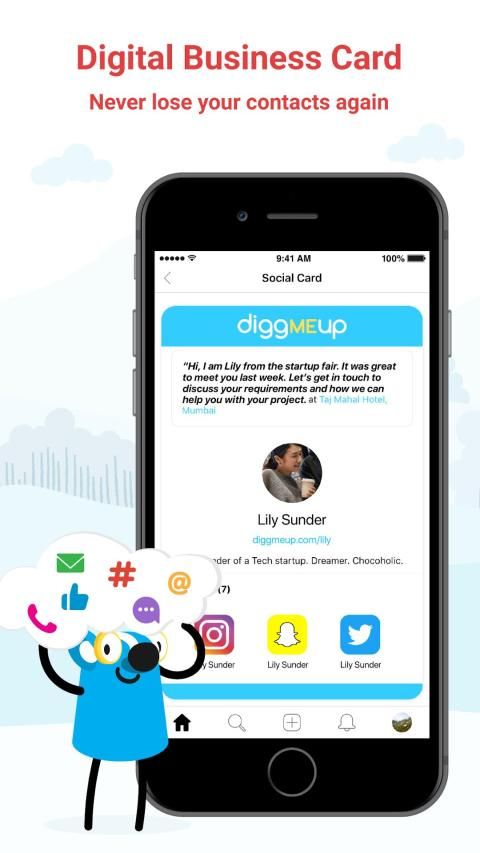 Tired of handing out your social network usernames and contact info separately each time you meet someone new? List them under one username on Diggmeup and let this be your universal social identity. List upto 100 network details including Facebook, Twitter, WhatsApp, Instagram, Phone number, Google location, email address, Skype, Snapchat and many more! Choose to keep your networks public or private and share them as you like!