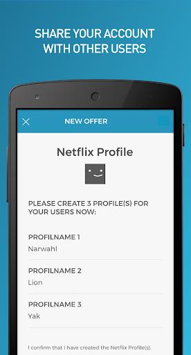 Create an account sharing offer: Decide with how many users you want to share on the base of which conditions and we care about anything else.