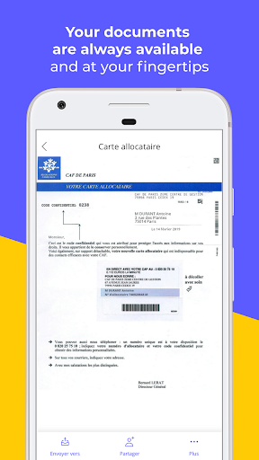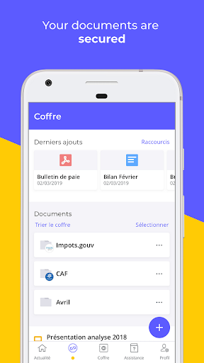 In addition to automatic collection, you can drop and save any document from all of your devices, via cloud storage tools. Do you have a paper document? Scan and save the file in one click from the mobile scan, directly in your secured safe.
