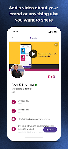 * Multiple card creation: Create various digital business cards for multiple businesses