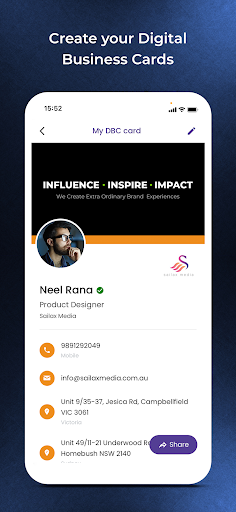 Stay ahead of the competition with Sailax digital business card app. Create multiple cards,