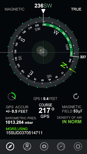 Compass Pro is the app for professionals. It shows device real-time orientation to magnetic fields. It's displays lot of useful information like location, altitude, speed, magnetic field, barometric pressure, etc.