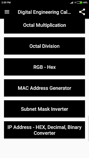 Perform or verify the results of digital arithmetic computation or calculations that involves binary, hex, octal, decimal numbers, RGB, IP address, KB, MB, GB to perform addition, multiplication, subtraction, division, conversion etc between these digital components by using these digital computation calculators. The main objective of these calculators is to assist students, professionals and researchers quickly perform or verify the results of such calculations to save their time in the field of digital information processing