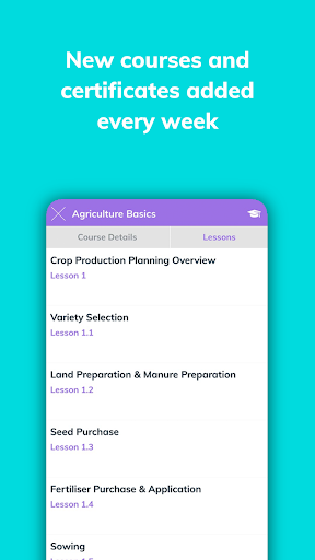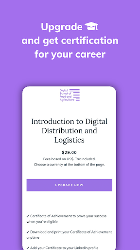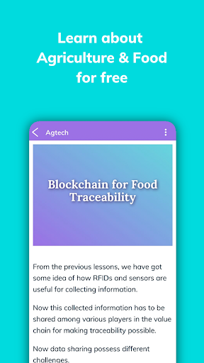 - Mobile-first: Digital School of Food and Agriculture is completely available through the app and all learning materials are designed to suit your mobile screen
