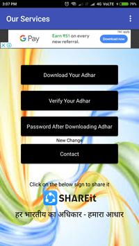 This app mainly gives all most all the services related to ADHAR CARD, such as -